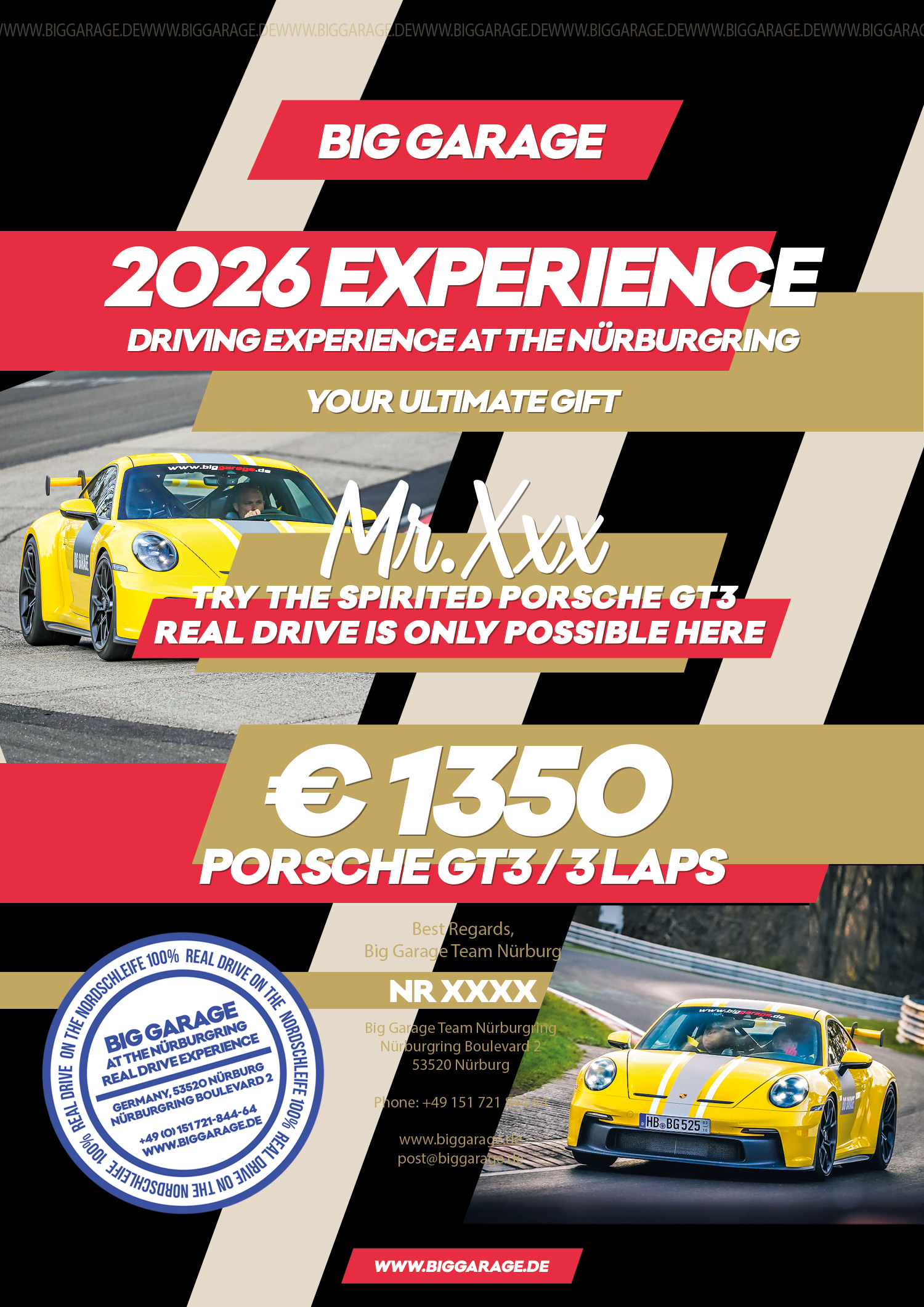 - For Booking: Send all the information to us by email or WhatsApp ( how many laps, or your budget )